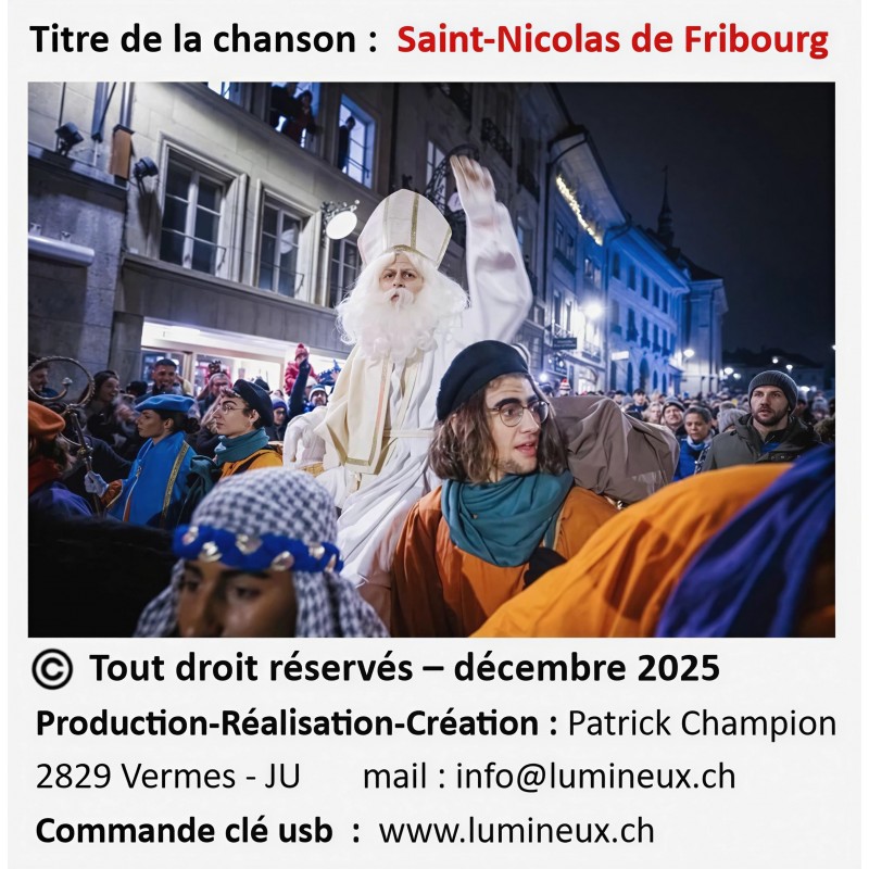 À cette occasion, je mets à disposition ma chanson : La Saint-Nicolas de Fribourg disponible sur clé USB en deux formats